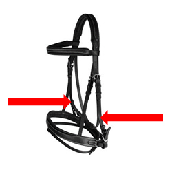 Die Backenstücke werden von der Höhe so eingestellt, dass die Maulwinkel Deines Pferdes 2-3 Falten bilden, wenn das Gebiss eingelegt ist. Dann stößt das Gebiss nicht an die Zähne und liegt im zahnfreien Raum des Pferdemauls.