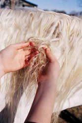 Es beginnt alles harmlos. Ein kleiner Zwirbel oder ein winziger Zweig nistet sich in der Mähne deines Pferdes ein. Dann beginnen sich die Haare ineinander zu verdrehen und zu verwirren. Ein Knoten beginnt sich zu entwickeln und die Haare verfilzen durch sich einnistenden Schmutz. Und dadurch wird noch mehr Schmutz eingefangen. In kürzester Zeit ist die schöne lange Mähne Deines Pferdes ein unansehnliches Gewirr aus Dreadlocks.