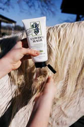 Wenn die Mähne und der Schweif durch Schlamm verkrustet oder versetzt sind, solltest Du die Haare zunächst waschen. Verwende hierfür Cowboy Magic ® Rosenwasser Shampoo um den Schmutz sanft zu lösen. Das Shampoo ist so konzentriert, dass schon eine kleine Menge ausreicht, um das Haar gründlich zu reinigen. Die seidig spülende Wirkung in der Formel ist ein Akt der Vorbehandlung, um die Knoten in den Haaren aufzuweichen und zu lösen. Aber versuche nicht schon beim Waschen die Haare zu entwirren. Du musst die Haare zunächst gründlich reinigen und pflegen.