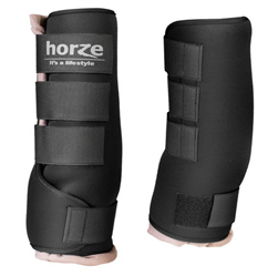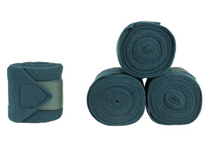 Die erste Möglichkeit ist das Einbandagieren der Beine. Dies ist allerdings nur entfernt mit dem Bandagieren der Pferdebeine zum Training zu vergleichen. Beim Training verwendet man dünne Bandagierunterlagen. Die Pferde bewegen sich in der Nacht nicht sehr viel. Deshalb müssen die Unterlagen dick sein um das Bein „mehr atmen zu lassen“. Die Bandagierunterlage sollte dann mit einer Fleece-Bandage fixiert werden.