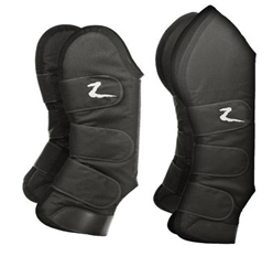 Die dritte Möglichkeit die Beine zu schützen kann mit Transportgamaschen erfolgen. Nur sollten dann Transportgamaschen benutzt werden, die bis unter das Carpal- bzw. Tarsalgelenk reichen, sonst fühlt sich das Pferd beim Ablegen unwohl.